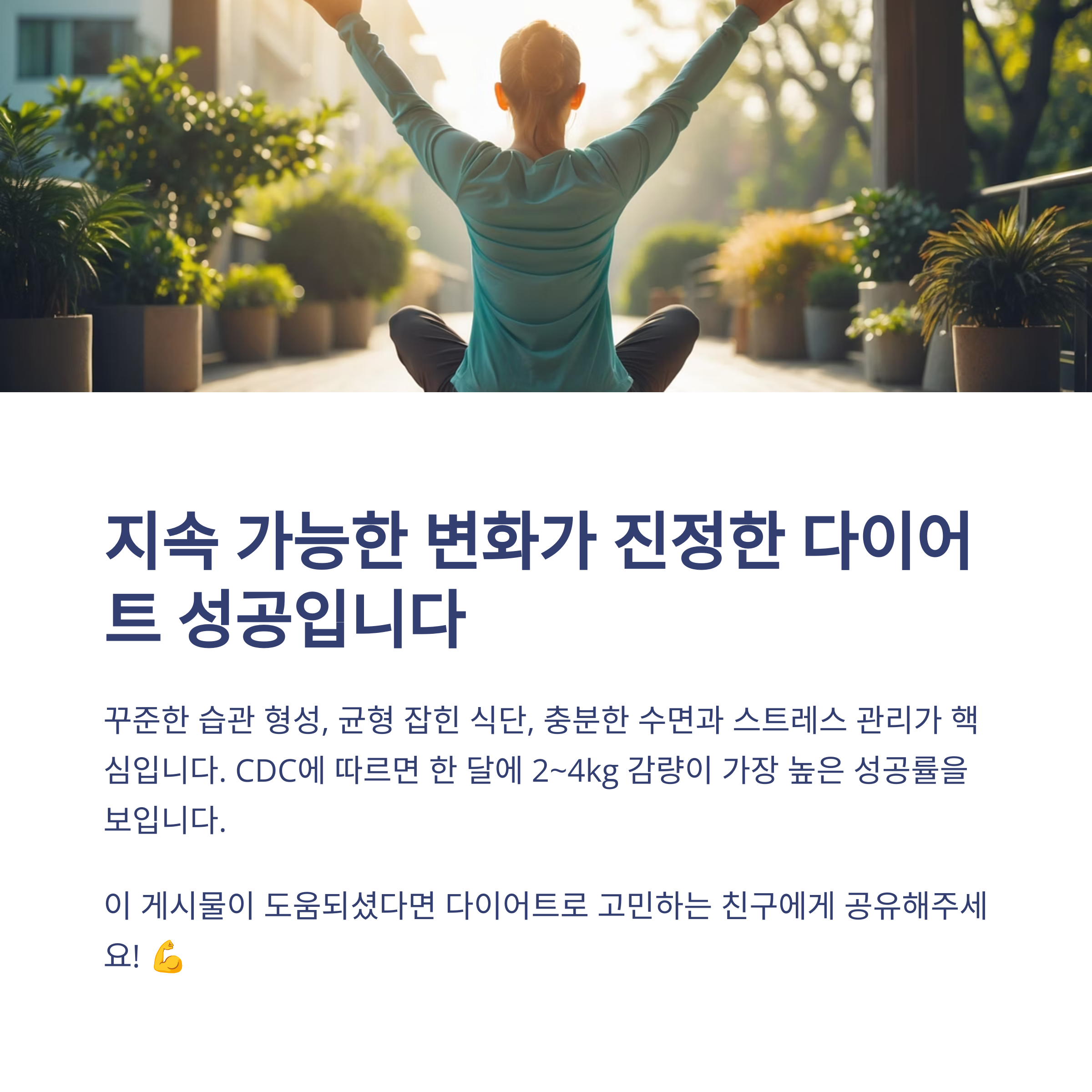 다이어트가 실패하는 또 다른 이유는 비현실적인 목표 설정입니다. 너무 빠른 감량을 기대하거나, 한두 번의 실수로 쉽게 포기해버리는 경우가 많죠. 지속 가능한 루틴소소한 성공 경험을 누적시키는 것이 장기적으로 체중을 감량하고 유지하는 핵심입니다. 습관이 쌓이면 결과는 반드시 따라옵니다.